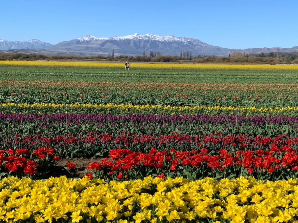 Cuando la primavera està madura en el Hemisferio Sur florecen los tulipanes de Trevelin. Hablamos concretamente del campo de Juan Carlos Ledesma en Trevelin,a 26 km de Esquel en la provincia argentina de Chubut sobre la ruta 259 que une al paso internacional a Chile. Paradisíaco paraje pr+oximo a las Cascadas de Nant y Fall con saltos de hasta 46 metros de altura.La firma floricultora es «Plantas del Sur» y posee el mayor emprendimiento productor de tulipanes nacional, en un predio de tres hectáreas.